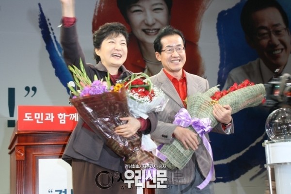 350만 도민과 이룬 쾌거입니다. 전국광역지자체 최초 채무제로를 실현한 홍준표 지사는 현안관련 자신의 SNS를 통해 직설적이고 당당한 속내를 밝히면서 막말논란을 일으키기고 했지만 그의 정의와 원칙 그리고 당당함은 광팬을 만들었고 자신의 입장을 분명히 했다. 홍 지사는 성완종 리스트 파문으로 재판을 받고 있는 상황에서 무죄를 선고 받게 된다면 내년 대권행보에 정치적 관심이 집중되고 있다.