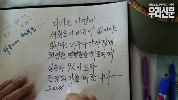 그러면서,"다시는 이 땅에 없어야 할 비극이자 아픔을 우리 국민 모두가 똑같이 느끼고 계신데, 이게 왜 국론분열과 정쟁의 원인이 되는지 안타깝기만 합니다"라며"가족분들의 요청으로 제 명함과 핸드폰번호를 적어 드렸는데, 조금이라도 그분들에게 도움이 되었으면 하는 마음입니다.