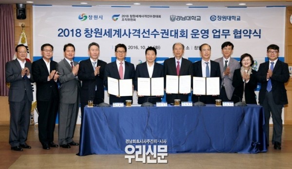 창원시는 11일 오전 11시 30분 시청 제3회의실에서 창원 세계사격선수권대회조직위원회, 경남대학교, 창원대학교와 ‘2018 창원 세계사격선수권대회 운영 업무협약’을 체결했다.