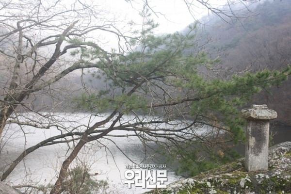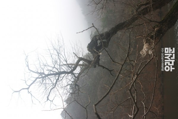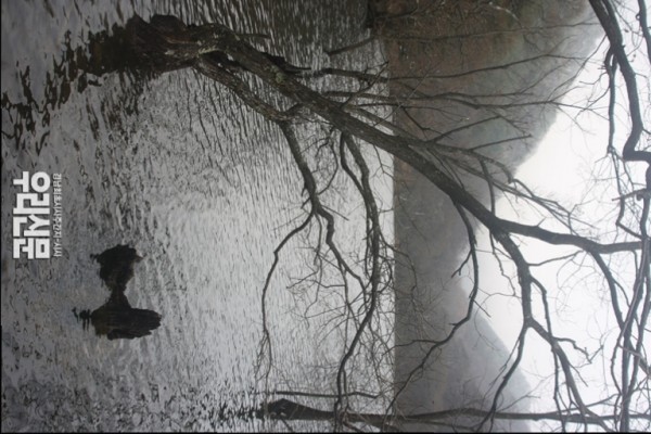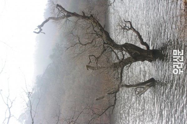 주산지 비문석을 마주하고 바라본 주산지 풍광은 겨울을 맞이하듯 앙상한 나뭇가지만이 훤한 속살을 드러내며 주위와 조화를 이루며 추위를 기다리고 있는 듯했다.현실세계가 아닌 사계절을 담은 영화속 주산지는 인간의 편의 시설 제공이라는 명목아래 데크로드가 조성됐고 왕버들 나무가 호수에 반사되는 사진을 렌즈에 담기에는 거리가 멀었다.