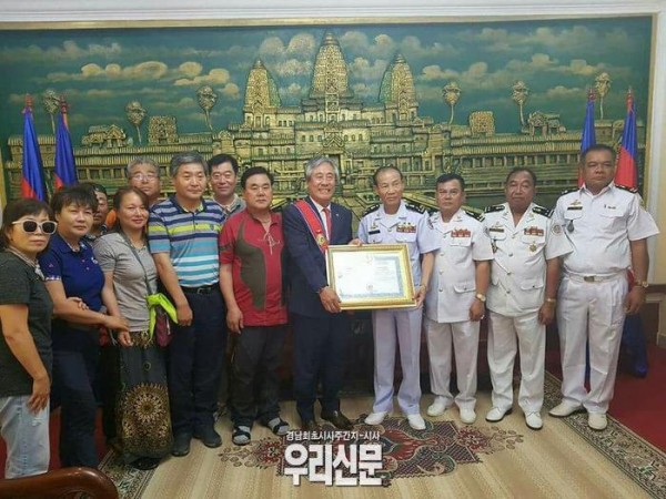 이어,"캄보니아 해군사령부를 방문해 캄보디아 국왕대훈장 십자 훈장을 받고 왔다"며"기념 촬영을 위해 태극기를 함께 들어 준 사령관이 감사하다. 모두 고맙습니다. 감사합니다."라고 게재했다.