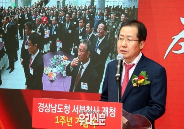 홍준표 도지사는 이날 기념사를 통해 “도청 서부청사를 약속했을 때만 해도 많은 분들이 ‘설마 되겠느냐?’ 라고 했지만 이루어 내었다.”며, “90년 만에 도청 3분의 1이 진주로 귀환했다.”고 말했다.