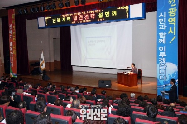 안상수 창원시장은 12일 진해구청에서 열린 ‘진해지역 발전전략 설명회’를 통해 ‘新해양시대, 진해 재도약 3대 발전 전략’을 제시하고 ‘지역경제 회생’과 ‘진해구민 삶의 질 제고’라는 두 마리 토끼를 잡겠다고 밝혔다.
