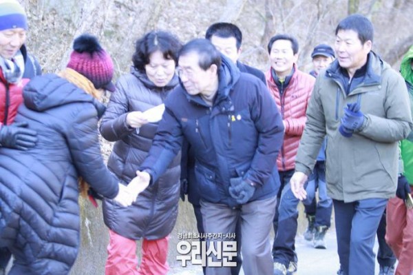 이날 부모 묘역을 참배한 박원순 시장은 자신을 마중 나온 지지자 50여 명과 함께 창녕읍에 있는 화왕산 전망대 까지 산행했다.