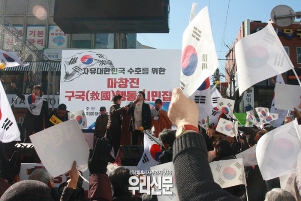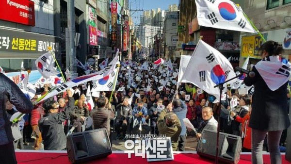 경남도가 어느새 야권세력으로 뭉쳐가고 있는 현실이다. 태극기 집회에 젊은 2030세대들은 거의 눈의 뛰지 않았다. 오히려 의경들이 많았다.여론조작이 촛불시위에 어린학생들을 현혹하는 사상교육이 정말 무섭게 느껴진다. 자유,민주,정의를 외쳤던 3.15의거 발원지에서 열린 태극기 집회는 그 의미가 남다르다.