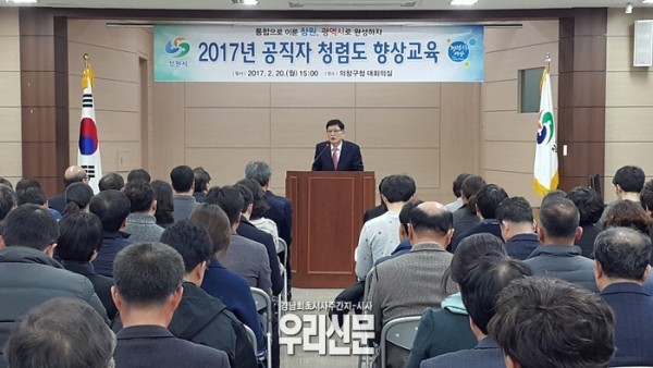 창원시는 청렴시책의 일환으로 20일 의창구청을 시작으로 24일까지 4일에 걸쳐 구청과 본청을 6개 권역으로 나눠 소속 공무원 750여 명을 대상으로 하는‘2017년 찾아가는 공직자 청렴도 향상 교육’을 실시했다.