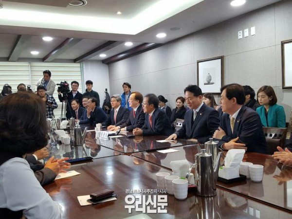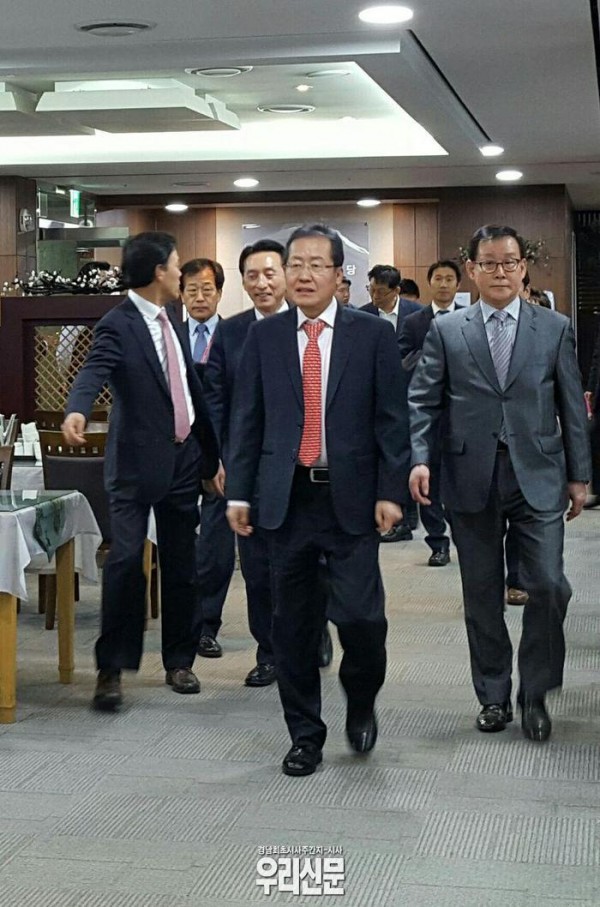 오늘 간담회에는 강효상, 정유섭, 이만희, 조훈현, 김성태, 이종명, 송석준, 이철규, 윤상직, 전희경, 윤한홍, 박찬우. 민경욱, 김석기 의원 등이 참석했다. 간담회를 주최한 강 의원은 "일부 야당에서 '대법원 재판이 남았는데 (홍 지사가) 출마 자격이 있느냐'는 주장을 하는데, '금품 수수한 사실이 없다'고 항소심에서 완전히 정리됐다"며 "대법원은 법률심이기 때문에 유·무죄 관계는 이미 끝난 사안"이라고 설명했다.