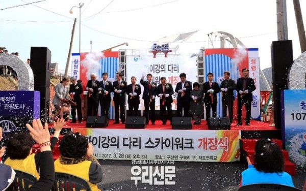 안상수 창원시장은 기념사를 통해 “2017년은 지난해까지 초석을 다져왔던 관광시책들이 본격적인 성과를 나타내는 시기로 ‘콰이강의 다리 스카이워크’가 그 신호탄이 될 것이며, 아울러 기존의 둘러보는 관광에서 ‘직접 즐기고 체험하는 관광’으로 변모하는 시점에 창원시가 관광도시 면모를 갖추고 관광객을 불러 올 수 있는 해법을 제시하며 지역의 ‘관광 랜드마크’로 자리 잡을 것”이라고 기대하면서 “특히 구산면은 향후 준공될 마산로봇랜드와 구산해양관광단지가 추진되고 있는 글로벌 해양관광의 중심지역인 만큼 전국의 대표적인 관광명소가 될 것이라고 확신한다”고 밝혔다.