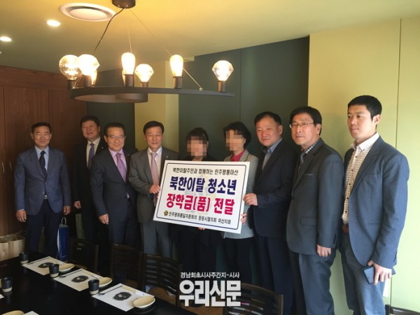 마산동부경찰서(서장 이희석)는,민주평통 마산지회(지회장 조성윤)와 함께 18일 마산사보이호텔에서 북한이탈주민을 초청, 자녀(학생) 13명에게 장학금 100만원과 테블릿PC 10대를 전달했다.