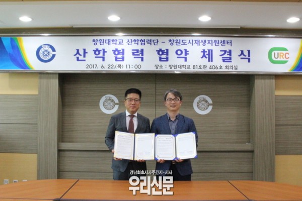창원시도시재생지원센터(센터장 김영)와 창원대학교 산학협력단(단장 박경훈)은 지난 22일 창원대 산학협동관에서 창원시에서 추진되는 도시재생의 활성화를 위한 업무 협약을 체결했다. 이는 창원시 도시재생의 지속가능성 확보를 위해 지역대학과 협력적 거버넌스 체계 마련을 위해 추진되었으며, 창원시도시재생지원센터는 지난 19일 있었던 경남대와의 업무 협약에 이어 창원대와의 협약을 통해 보다 다양한 지역전문가와의 연계‧협업을 추진할 예정이다.