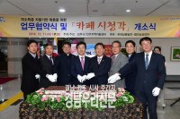 진주시는 11일 오후 2시 시청 2층 로비에서 조규일 진주시장을 비롯한 유관기관 관계자, 경남도내 자활센터장들이 참석한 가운데 "카페 시청각"개소식을 가졌다. 이번 카페 시청각은 시청을 방문하는 시민에게 만남과 휴식의 공간을 제공하고, 저소득층 일자리 창출을 위하여 민관 협력 하에 개소하게 됐다.또한 시청 카페는 저소득층 및 청년 일자리 확대를 위해 진주지...