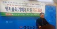 ▲   석종근 감사가 경남도청에서  기자회견을 하고 있다. 경남동부신협, “전임 임원 10억8천만원 부정 의혹” - 25일 임시총회 “총회승인 시 자산관리공사에 공매 의뢰, 채권 반환” (경남소상공인신문=창원) 송교홍 기자= 경남동부신협 감사(대표감사 석종근)는 감사결과 전임 임원이 약 10억 8천 여 만원에 해당하는 중대한 부정사실을 발견, 이를 총...