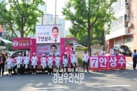 6.13지방선거를 3일 앞 둔 10일 오전 무소속 안상수 창원시장 후보가 유세현장에서 홍준표 자유한국당 대표에게 고한다"며"이 자리를 빌어서 홍준표 대표에게 공개적으로 두세 가지 요구를 하겠다"고 작심 발언을 전했다. ▲ 안상수 창원시장 후보가 손을 흔들며 유세를 하고 있다.     ©경남우리신문 편집국 이날 안 후보는 유세현장을 통해 "하나는 홍준표...