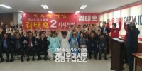 경남도지사 김태호 후보의 지지 선언이 잇따르고 있다.   이 날 오후 불교계 인사들의 지지 선언에 이어 전국보수우파 대연합 소속 경남보수우파 대연합(상임대표 이재희) 소속 회원 100여 명이 김태호 후보 선거사무소를 방문해 지지성명에 동참했다.   ▲경남도지사 김태호 후보의 지지 선언이 잇따라     ©경남우리신문 편집국 이들은 전국보수우파 사무처, ...