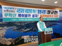 6.13동시지방선거에 각 후보들의 지역정책 공약이 발표되고 있는 가운데 창원시장에 출마한 바른미래당 정규헌 후보는 28일 오후2시30분 창원시청 프레스센터 기자회견을 열어 여덟번째 시민과의 약속을 통해 ‘무학산 케이블카를 설치하고 문화예술특구로 지정’을 내놓았다.    ▲ 정규헌 후보는 28일 오후2시30분 창원시청 프레스센터 기자회견을 열어 여덟번째 ...