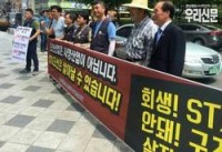 김무성 전 대표가 5일 민생투어 대장정 5일차 '겸허한 경청(Listening humle)'을 위해 조선산업의 요충지인 경남 거제를 방문하고 오후 경남창원고용복지센터를 방문했다. 이날 김 전 대표는 조선 노동자들이 시위중인 현장을 찾아 노동자들과 악수를 한 후 조선산업은 사양산업이 아닙니다.STX조선은 살아날 수 있습니다! 펼침막 앞에서 그들을 격려하고...
