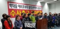 새누리당 진주갑 최구식 예비후보 선거사무소는 10일 오전 진주시청 브리핑룸에서 기자회견을 통해 "개인정보 포함된 새누리당 당원명부 유출은 중대 범죄 행위다"며"박대출 예비후보와 이성환 시의원은 해명하라!"하라고 강력 촉구했다. ▲ 진주시청 브리핑룸에서는 박대출 예비후보 측이 불법당원명부를 유출했다며 관련 수사를 촉구하는 기자회견이 개최됐다.     © 경남...