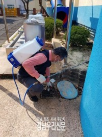 합천군보건소는 전문적 소독이 이뤄지기 어려운 어린이집 및 합천읍 경로당 49개소에 대해 ‘찾아가는 친환경 방역소독사업’을 지난 26일부터 다음달 27일까지 한 달간 실시한다. ▲찾아가는 방역소독서비스 현장     ©경남우리신문 편집국 이번 방역소독서비스는 여름철 전염병 유행을 방지하고 안전한 보육환경과 쾌적한 경로당 주거환경을 조성해, 면역취약계층인 영...