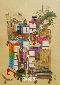 파티마갤러리는 2019년 새해를 여는 첫 전시로 1월 7일부터 2월 1일까지 옥도윤 작가의 민화전 「행복하다」를 연다. 이번 전시는 새해 첫 전시인 만큼 건강과 행복을 기원하는 민화를 통해 관람객들에게 복의 기운을 전하기 위해 기획됐다.   ▲ 옥도윤 작가, 책거리도15호     ©경남우리신문 편집국 옥 작가는 이번 전시에서 일월오봉도, 책거리도, 초...