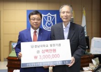 ▲     ©경남소상공인신문 경남대학교 글로벌CEO과정, 발전기금 300만 원 쾌척 - 8기 원생들, “모교의 성장과 발전을 위해 지속적으로 노력하겠다” (경남소상공인신문=창원) 송교홍 기자= 경남대학교 산업경영대학원(원장 여성구) 글로벌CEO과정 제8기 학생회(회장 송치민)는 10일 오전 9시 30분 총장실을 방문, 대학발전기금 300만 원을 쾌척했...