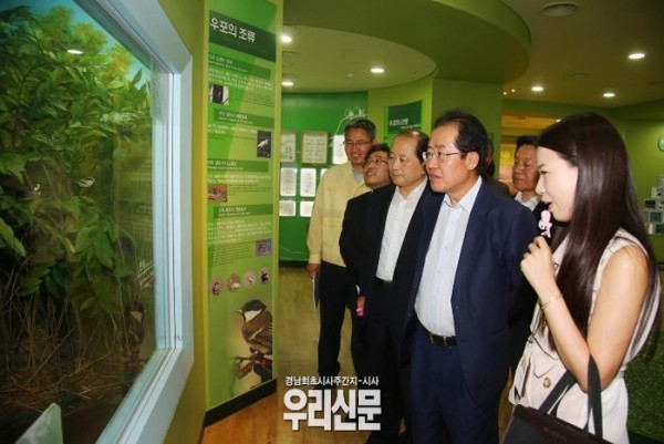 홍준표 도지사는 19일 경남 미래 50년을 준비하는 환경경남 기반구축의 주요사업장인 따오기 복원센터를 방문, 따오기 일반 공개 및 야생방사 준비사항을 점검하고 람사르환경재단 신축현장을 현장 점검했다.