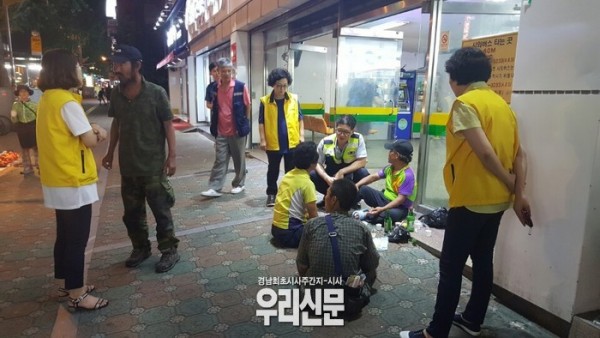 한편 이날 보호활동에서는 발목을 다쳐 걷지 못하는 노숙인을 발견하고 1시간 동안의 설득끝에 119로 병원후송, 치료를 받을 수 있도록 조치하였으며, 마산시외버스터미널 하차장 입구 노상에서 술을 마시고 있는 노숙인들에 대하여 상담을 통한 노숙인 쉼터 입소 안내 및 자진 귀가토록 조치했다.