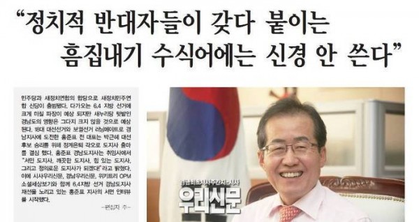지난 6.4지방선거를 앞 둔 상태에서 본지와의 인터뷰를 통해 홍준표 지사는 이렇게 밝혔다.