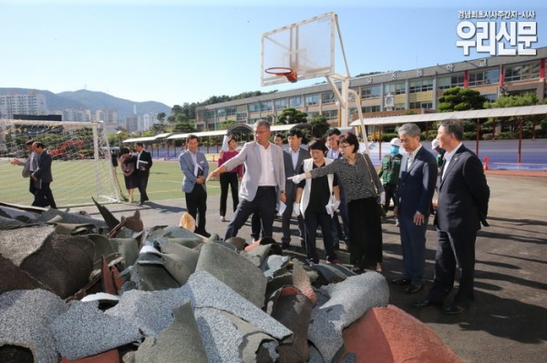 또 24일부터 김해 장유초등학교, 진영대창초, 주촌초, 김해외동초, 진영여중 등 운동장 우레탄 학교 132개 가운데 하자여부 규명 대상 학교 35개교, 고등학교 26개교를 제외한 71개교 운동장 우레탄을 오는 9월까지 사업비 31억원을 들여 철거를 완료할 예정이라고 밝혔다.