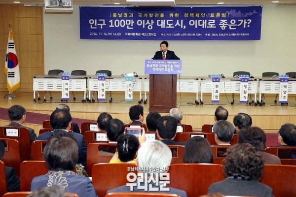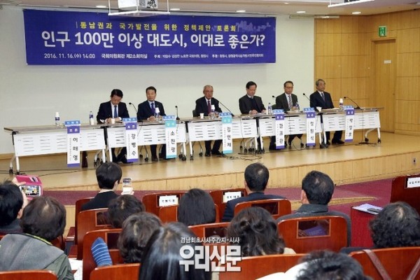 ‘창원광역시 승격’에 대한 정치권 관심과 공론화를 위해 ‘동남권과 국가발전을 위한 정책제안 토론회’가 16일 국회에서 열렸다.