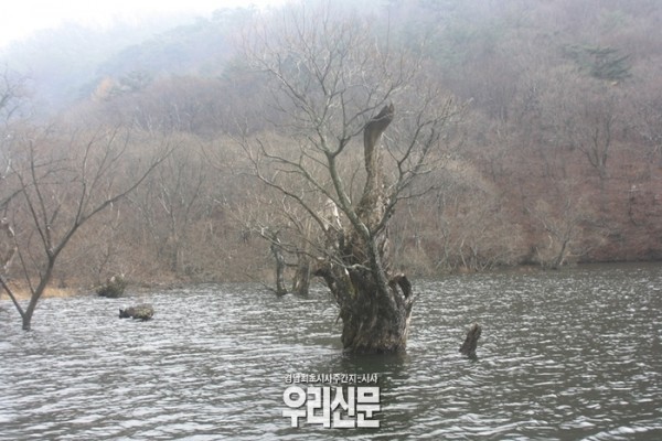왕버들나무 20~30여그루가 물속에 잠겨 생명력을 과시한채 자태를 뽐내고 있었지만 대낮의 주산지는 그냥 작고 평범한 저수지에 불과했다.