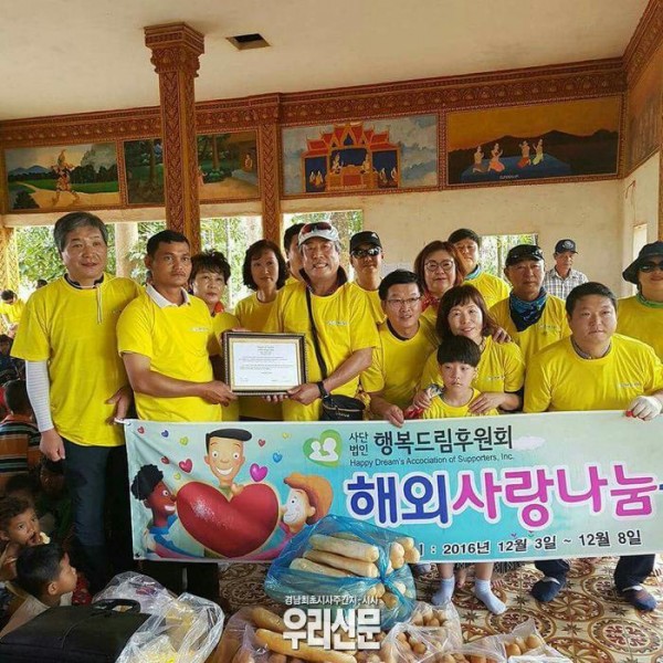 대한민국이 가장 어려웠던 시절 도움의 손길이 큰 힘이 되었듯이 이제는 대한민국 보통사람들이 만든 사단법인 단체 행복드림후원회가 캄보니아를 방문해 아름다운 사랑나눔봉사를 펼쳐 그들에게 큰 힘과 희망을 전달했다.