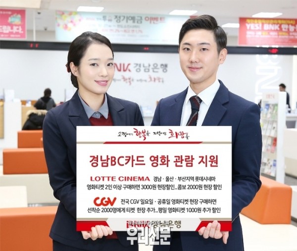 카드사업단 이상봉 단장은 “영화 관람을 즐기는 고객들에게 연중 다양하고 폭 넓은 혜택을 제공하는 경남BC카드를 추천한다. 가족과 연인 등 사랑하는 사람들과 영화 관람을 할 때 경남BC카드를 적극 이용해 알뜰한 문화생활을 누리기를 바란다”고 말했다