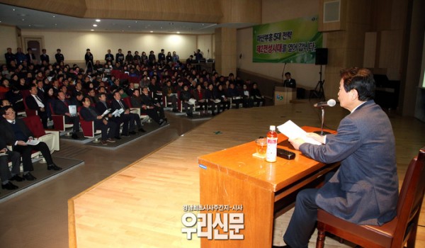 안상수 창원시장은 16일 오후 마산합포구청 대회의실에서 이 지역 도‧시의원, 시민 등 600여 명이 참석한 가운데 ‘마산지역 발전전략 설명회’를 가졌다. 안상수 시장은 ‘마산부흥 5대 전략’을 추진해 전국 7대 도시 옛 마산의 전성시대를 열겠다는 포부를 밝혔다.