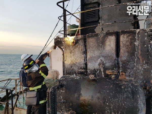 현장에 도착한 창원해경은 A호에 승선해 가스탐지기 등 화재 점검장비로 화재진화 상태와 인명피해 여부 및 선박 안전 상태를 확인한 뒤 부산항으로 항해하는 A호를 안전하게 호송했다.