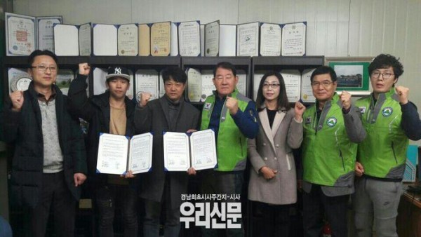 사단법인 경남환경연합 (남성용 회장)과 S.I.G무용단 (송일구 단장)은 20일 오후2시 사단법인 경남환경연합 사무실에서 경남 창원시 마산합포구 진전면 시락마을에 위치한 생태공원 및 친환경 쉼터에 관한 사용허가에 대해 상호업무 협약을 체결했다.