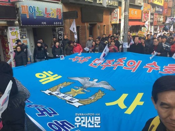 경남애국시민연합과 탄핵기각 경남본부는 시민 4천여명이 모인 가운데 26일 오후 2시부터 3.15민주의거 발원지인 오동동 문화의거리 일원에서 대규모 태극기 집회가 개최됐다. 이들은 탄핵의 바람잡이로 조중동과 종편등 ‘언론’을 앞잡이로는 김무성, 유승민등 총선때 박 대통령의 은혜를 입은 김무성과 유승민등 바른정당 의원들을 주범으로는 문재인과 안희정 등 정권창탈에 눈 이 먼 ‘야당’을 들었다.