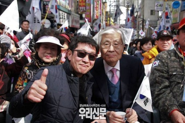 조 대표는 이어 “이들 언론은 재활동도 못하는 쓰레기가 아니라, 정신적 독극물”이라며 “마산시민들과 대한문의 태극 국민들은 그 독약에 중독되지 않은 맨 정신 상태로 태극기를 들 자격이 있다”고 말했다. 조 대표는 또 “태극기는 진실 정의 자유를 뜻하는 것으로 촛불들은 태극기를 보면 적개심을 느끼기 때문에 들지 못한다”면서 “소매치기 사기로 자유반공 대한민국 체제를 붕괴시켜 연방제 통일을 획책하려는 세력에게 결코 정권을 내줘선 안된 다”고 힘주어 말했다.