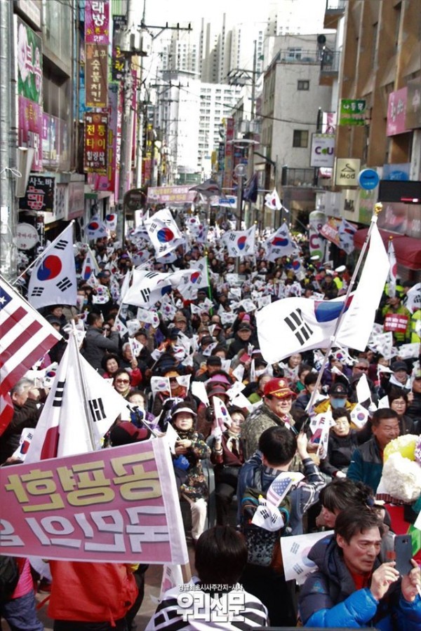 박근혜 대통령 취임 4주기인 25일 전국이 태극기 집회와 촛불집회로 나눠 지면서 탄핵과 탄핵반대를 외치며 맞불집회를 펼쳤다.헌정 사상 두번째 대통령 탄핵이라는 국정 혼란속에서도 정치인과 언론사들은 민심을 내세워 국민들을 두 집회로 나눠지게 했다.대한민국은 박근혜 대통령이 국회 탄핵소추 후 촛불과 태극기 집회로 대립되는 형국이 됐다.이러한 상황에서 국회 정치권은 오로지 개헌과 특검연장을 내세우며 야권은 정권창출을 위해 촛불집회로 나섰고 한국당 의원 몇몇 의원들이 태극기 집회에 참석했다.청주 태극기 집회 현장에서 젊은 청년들이 대한민국 태극기를 훼손 했다는 소식이 SNS를 통해 전해지면서 국가안보와 애국심이 망각됐다는 것을 직시하게 됐다.-편집자 주-