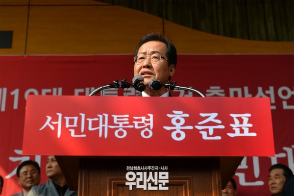 "서민대통령" 자유한국당 대권주자인 홍준표 경남지사가 "25일 고 노무현 전 대통령이 박연차 태광실업 회장의 뇌물을 받았을 때 문재인 더불어민주당 전 대표가 당시 대통령 비서실장으로서 어떤 역할을 했는지 본인 입으로 밝히라"고 직격탄을 날렸다.