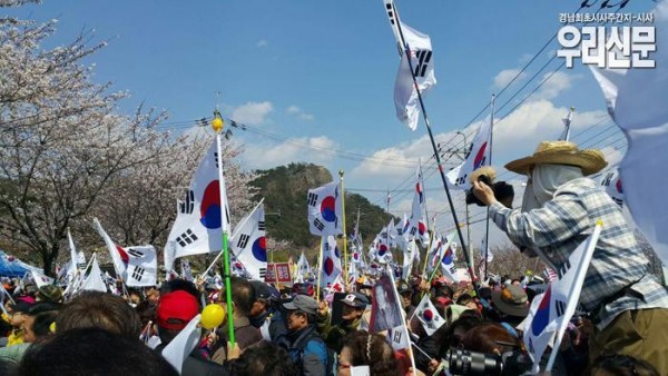 이날 태극기집회는 부산과 대구·경북, 수도권 등지에서 모인 참가자들은 집회장소에서 진영읍 서의지공원까지 4㎞를 행진했다.