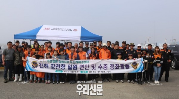 창원해경 진해해경센터와 구조협회 창원지부 소속 구조대원 가족 등 약 60여명이 참여하여 쾌적하고 깨끗한 바다를 만들기 위해 육상과 수중에서 폐기물과 쓰레기를 수거하는 등 주말에도 구슬땀을 흘렸다.