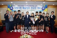 허성무 창원시장은 8일 시청 접견실에서 ‘재44회 대통령기 전국레슬링대회’에서 우수한 성적으로 거둔 창원시청 레슬링부 선수단을 격려했다.  ▲허성무 시장, 창원시청 레슬링부 선수단 격려     ©경남우리신문 편집국 창원시청 레슬링부는 지난달 25일부터 31일 강원도 양구군에서 열린 ‘제44회 대통령기 전국레슬링대회’에서 금 3개·은 3개·동 3개를 획득...