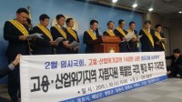 ▲   고용.산업위기지역 9개 지방단체장과 국회의원이 특별법 국회통과 기자회견을 하고 있다. 고용⋅산업위기 9개 지자체, 자립지원 특별법 촉구 기자회견 개최 - 특별법 2월 국회 즉시 통과 및 140만 시민 생존권 보장 촉구 (경남소상공인신문=창원) 송교홍 기자= 고용⋅산업위기지역 9개 지방자치단체 단체장과 국회의원이 참석한 가운데 고용⋅산업위기지역 ...