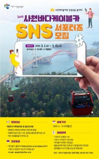 ▲     ©경남소상공인신문 사천바다케이블카, 대학생.일반인 SNS 서포터즈 모집  (경남소상공인신문=사천) 박순신 기자= 사천바다케이블카가 '2019년 대학생 및 일반인 SNS 서포터즈'를 모집한다. 이번에 첫 실시되는 '사천바다케이블카 SNS 서포터즈'는 3월 1일부터 15일까지(15일간) 모집하며, 지원 방법은 사천바다케이블카 홈페이지(http:...