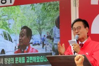 자유한국당 창녕군수 한정우 후보는 선거일 닷새를 앞둔 8일 오후, 선거 시작후 첫 창녕읍 장터 유세에서 "공천에 6번째 실패햇지만, 그 누구도 탓을 하지 않고 저의 부덕과 모자람을 나무라며 와신상담 해왔다"면서 "일하고 싶다. 곡 좀 도와달라"며 눈물로 호소해 지켜보던 지지자들의 눈시울을 뜨겁게 했다.   ▲"20여년을 와산상담 했습니다. 일 하도록 꼭...
