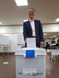 6.13 전국지방선거 사전투표가 시작된 8일 오전 바른미래당 김유근 경남도지사 후보가 경남 창원시 창원문화원에서 투표권을 행사했다.   ▲바른미래당 김유근 경남도지사 후보가 경남 창원시 창원문화원에서 투표권을 행사했다.     ©경남우리신문 편집국 이날 기자들의 소감 질문에 김유근 후보는 “짧으면 짧고 길면 긴 선거기간이었다"며"8일 9일이 사전투표 ...