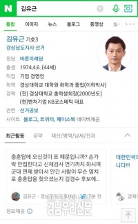바른미래당 김유근 경남지사 후보는 6일 오전 창원 충혼탑에서 열린 현충일 기념행사에 참가해 헌화와 참배를 했다.   ▲바른미래당 김유근 경남도지사 후보 트위터     ©경남우리신문 편집국 이날 김유근 후보는 김경수 후보와 함께 헌화한 후 트위트를 통해 군대 면제와 관련하여 일침을 가했다.   김 후보는 트위트를 통해 "충혼탑에 오신것이 표 때문입니까?...