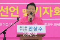 무소속 출마를 공식 선언한 안상수 전 창원시장이 지난 10일 오전 창원 오동동문화광장에서 지지자들이 대거 참석한 가운데 출마선언 기자회견을 한데 이어 13일 오후 1시 30분 창원시 성산구 중앙동 소재 대흥인터빌 2층에서 무소속 안상수 창원시장 후보 선거 사무실 개소식이 지지자들과 함께 성황리 개최됐다.    ▲안상수 창원시장 후보, 선거 사무실 개소식...