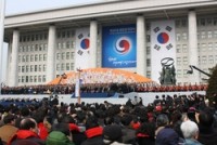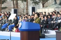 제18대 박근혜 대통령 취임식, ‘희망의 새 시대를 열겠습니다’ 제18대 박근혜 대통령 취임식이 25일 오전 11시 대한민국 국회의사당 특설무대 광장에서 국내외 귀빈과 일반국민 등 7만여명이 참석한 가운데  임기 5년의 제18대 대통령에 공식 취임했다.박근혜 대통령은 취임사를 통해  ‘희망의 새 시대를 열겠습니다’라는 제목의 취임사에서 "경제부흥, 국민행복...