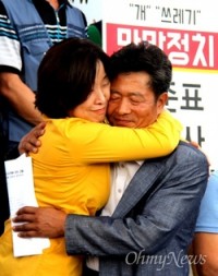 ▲ 심상정 대표가 19일 오후 경남도의회 현관 앞에서 열린 경남 야5당 정당협의회와 노동여성시민사회 인사들의 '홍준표 지사 사퇴 촉구 경남도민 참여운동 선언' 기자회견에 참석해 홍준표 지사 사퇴 요구하며 8일간 단식농성한 여영국 경남도의원을 안고 있다. 오마이뉴스 윤성효 기자 /사진=오마이뉴스     © 경남우리신문편집국   여러분은 이 사진을 보...